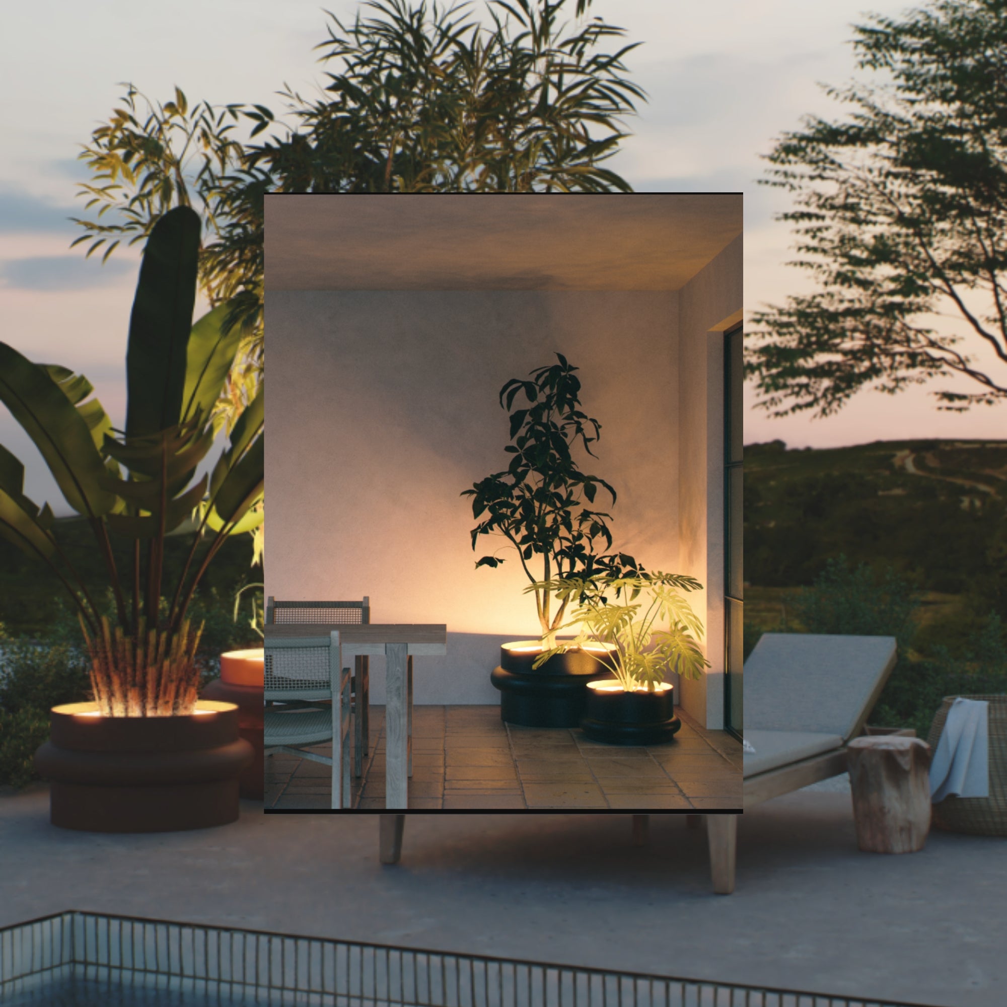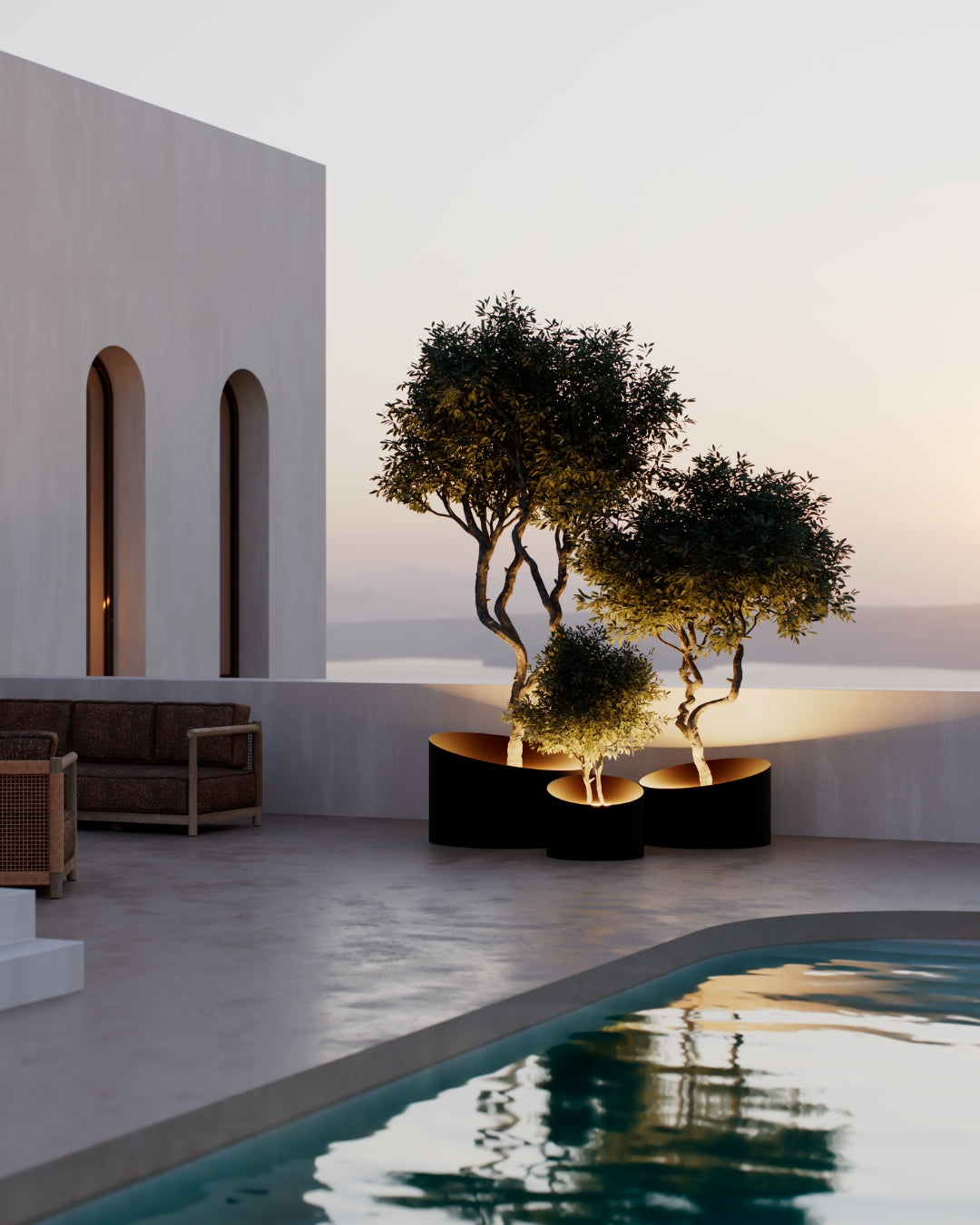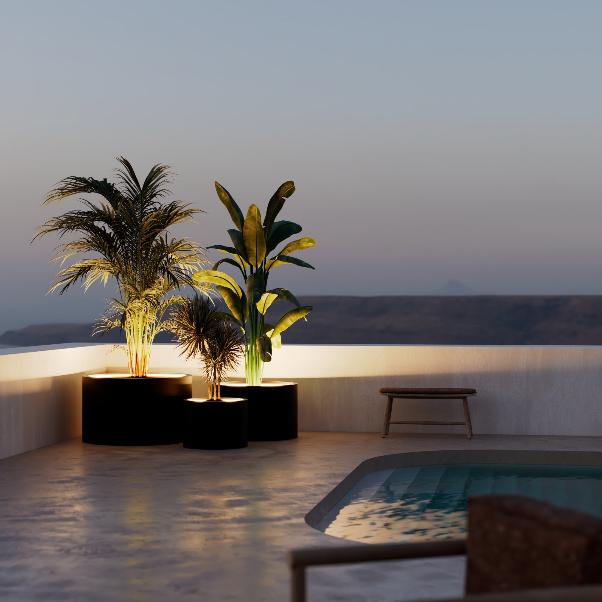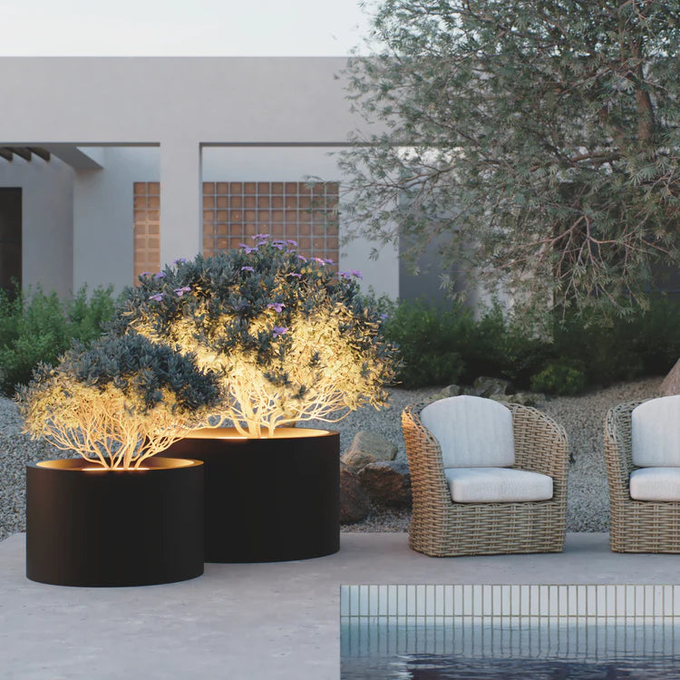 De MAZU Ambient Planters zijn ontworpen voor ruimtes die tot in detail kloppen. Gemaakt van massief aluminium, volledig weerbestendig, met geïntegreerde LED-verlichting die zacht gloeit zodra de avond valt. Niet alleen voor je planten – maar voor de hele beleving eromheen.