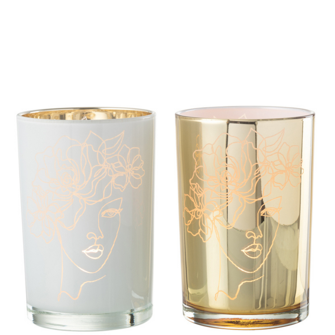Windlicht Vrouw met Bloemetjeshaar Wit/Goud Large Set van 2Verkäufer/in:Windlicht Vrouw met Bloemetjeshaar Wit/Goud Large Set van 2J-Line- Regulärer Preis