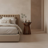 De Raw Materials Sabah bijzettafel combineert een luxe marmeren blad met een stevig onderstel van mango hout. Het ronde blad in diep zwart geeft een elegante en tijdloze uitstraling, terwijl de gekruiste pootconstructie zorgt voor stabiliteit en een moderne touch. Deze side table is compact en stijlvol, ideaal om sfeer én functionaliteit toe te voegen aan je interieur.