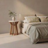 De combinatie van wit marmer en licht hout maakt deze tafel ideaal voor liefhebbers van een frisse en rustige woonstijl. Of je interieur nu modern, Scandinavisch of klassiek is: de Sarawak Island bijzettafel voegt altijd een stijlvol accent toe.