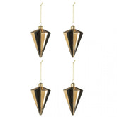 Doos Van 4 Kerstbal Diamant Gestreept Glas Goudkleurig/Zwart