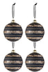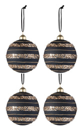 Doos Van 4 Kerstballen Pailletten Glas Mat Zwart/Goud Medium J-Line