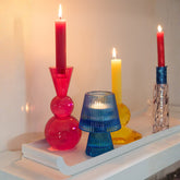 De kleurcombinatie van geel en oranje zorgt voor een warme uitstraling. Deze kaarsenhouders zijn een uitstekende keuze voor wie op zoek is naar een unieke en stijlvolle manier om zijn of haar leefruimte te verfraaien.