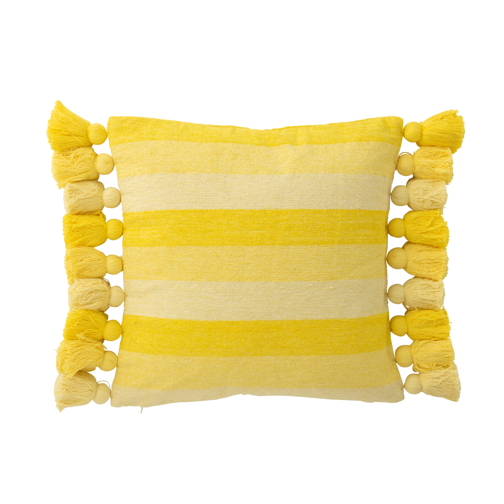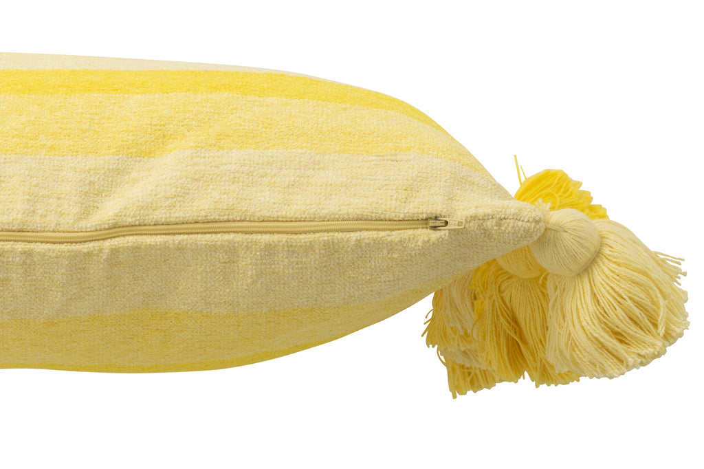 Kussen Strepen + Kwastjes Katoen Geel J-Line