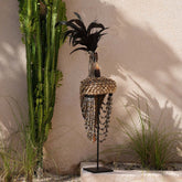 Dit prachtige kunstwerk combineert veren, schelpen en touw - allemaal verzameld van de stranden van Bali - tot een pronkstuk voor elke kast, open haard, tafel of waar u maar een uniek stuk nodig hebt om de show te stelen. De handgemaakte kwaliteit straalt echt in deze mooie decoratie op standaard.