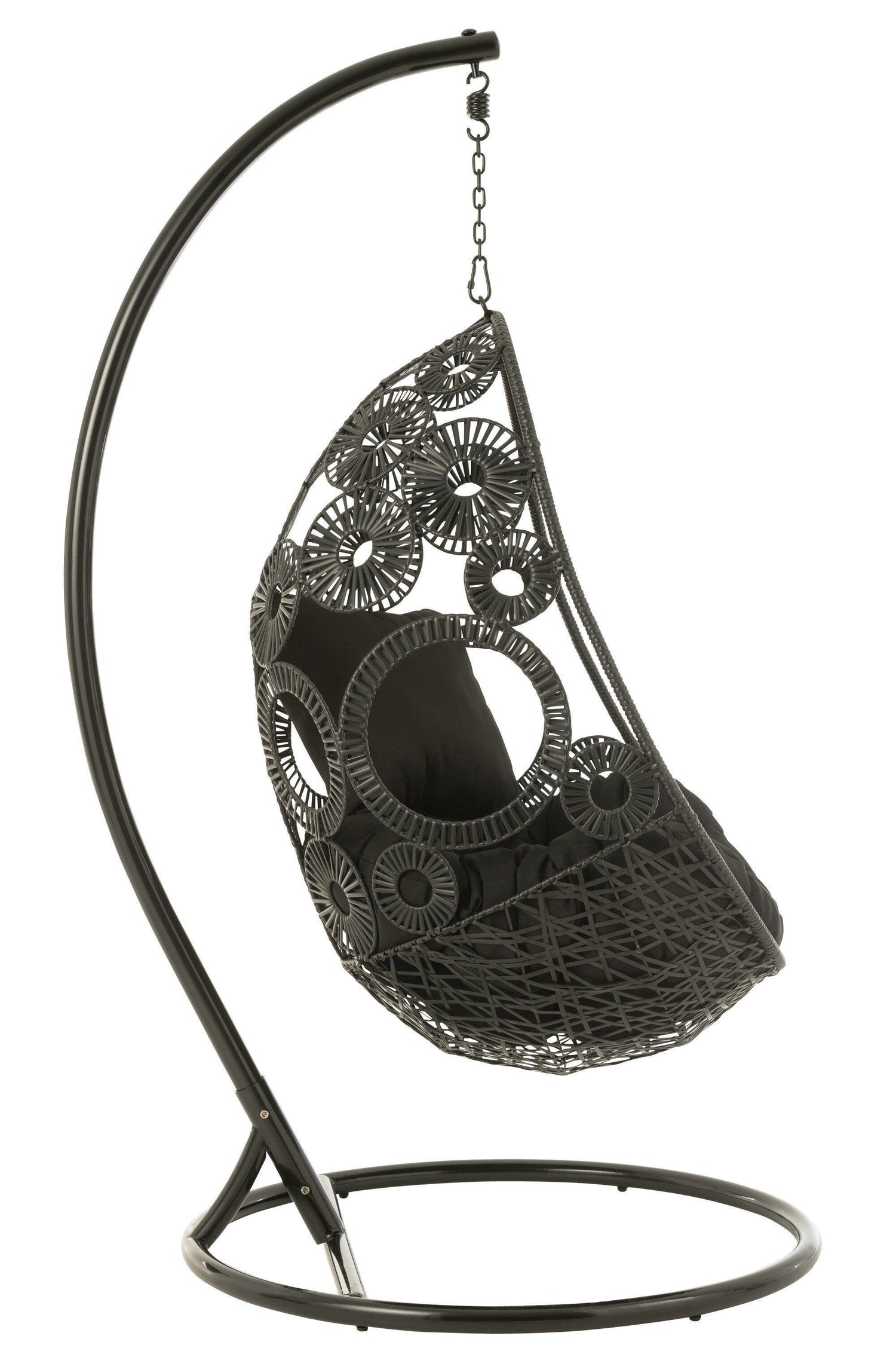 De J-Line hangstoel Bula zwart met kussens is een ideale combinatie van luxe en functionaliteit: