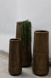 Breng hoogte, warmte en elegantie in je interieur met de Kardine Antique Gold aluminium pot High Large – een echte blikvanger met klasse.