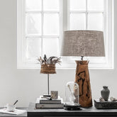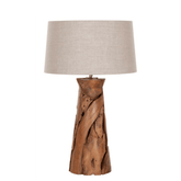 Tafellamp Jungle heeft een wel heel bijzonder uiterlijk. Deze is namelijk gemaakt van de wortels van een gekapte teakboom. De wortels zijn onder de grond vervormd tot dicht hout met een gouden glans en om deze reden opgegraven en gedroogd.