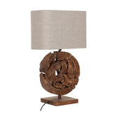 Tafellamp All around the world heeft een wel heel bijzonder uiterlijk. Deze is namelijk gemaakt van de wortels van een gekapte teakboom. De wortels zijn onder de grond vervormd tot dicht hout met een gouden glans en om deze reden opgegraven en gedroogd. Door de linnenkap geeft de lamp een warme uitstraling.