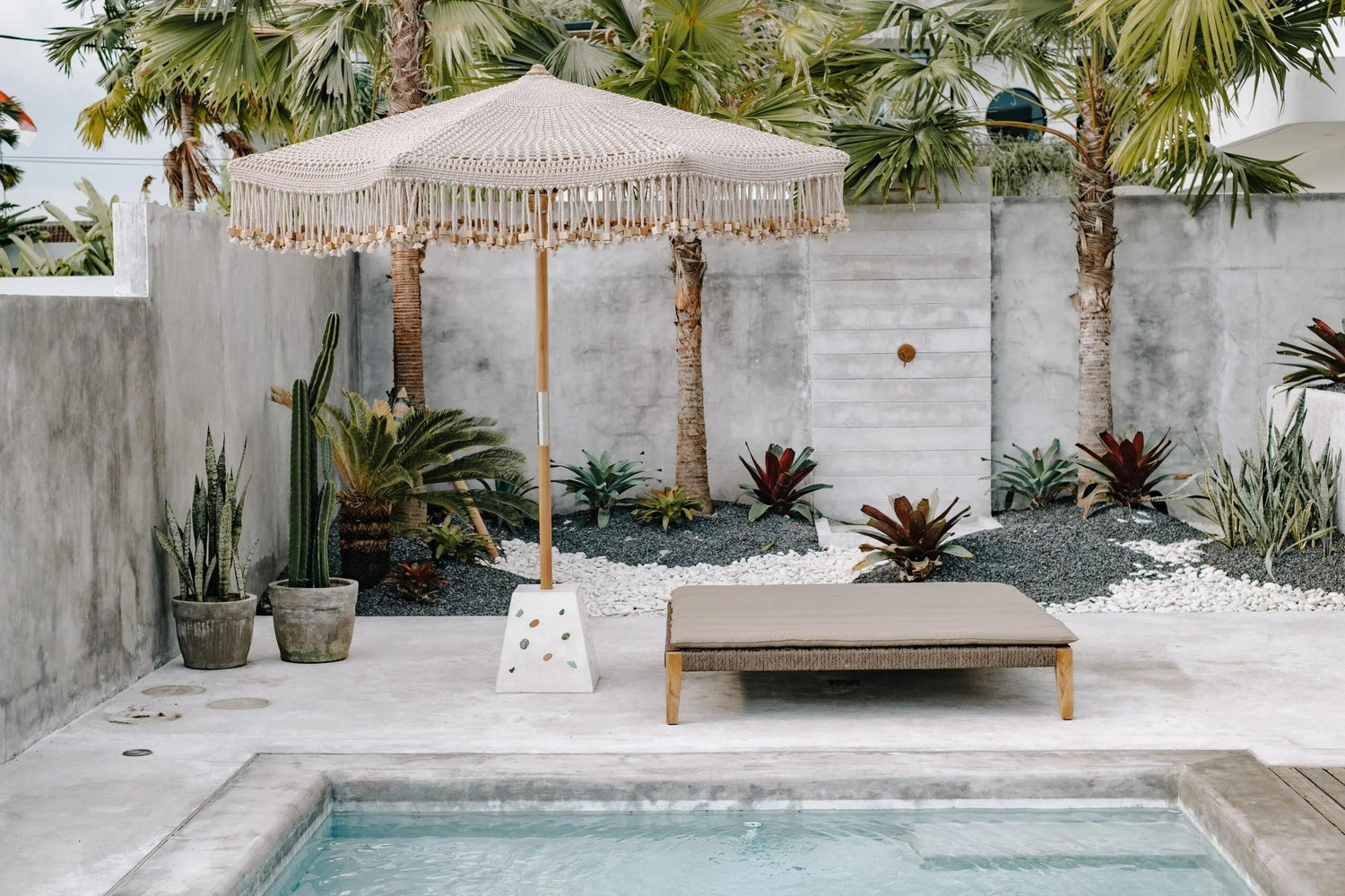 Gebruik een parasolvoet van mimimaal 45 kilo. Zoals bijvoorbeeld de olifantenvoet of de lotusbloem van 45 kilo uit onze collectie.