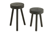 Set van 2 zwarte krukjes/bijzettafels van paulownia hout.