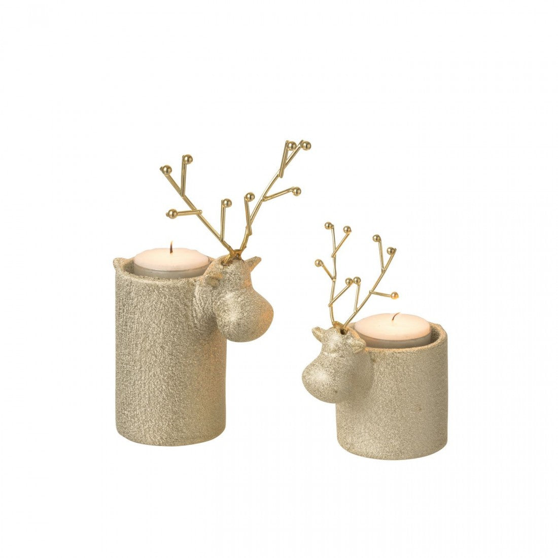 Theelichthouder Rendier Porselein Wit/Goudkleurig Set van 2 J-Line
