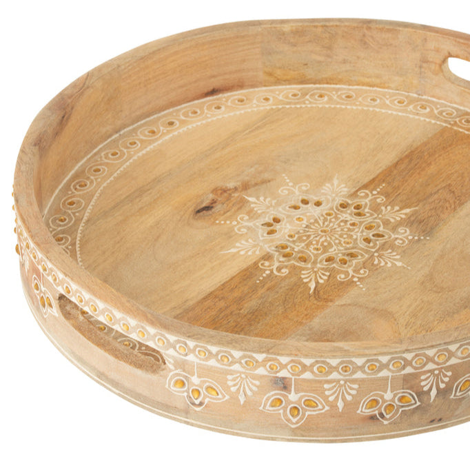 Dienbladen Met 2 Handvaten Kralen Mango Hout Naturel/Wit Set van 2 J-Line