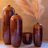 Wat deze J-Line vaas echt onderscheidt, is de verfijnde glazuurafwerking in de tinten bruin en oranje. Het geeft de vaas een glanzende uitstraling die het licht prachtig vangt. De hoge vorm van de vaas maakt het een veelzijdig stuk dat zowel op zichzelf als met een paar zorgvuldig geselecteerde bloemen indruk maakt. Het gebruik van hoogwaardige keramiek zorgt niet alleen voor duurzaamheid, maar geeft ook een aardse en natuurlijke uitstraling aan het interieur.