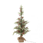 Kerstboom + Jute Zak + Led Kunststof Sneeuw Groen/Rood Small H130cm J-Line