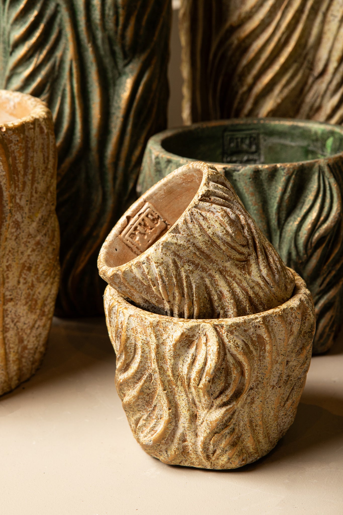 Alexio Cream Round Cement Pot Wavy Lines High L Ø20xH45cm PTMD