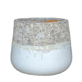 De Lenz Keramische Bloempot Medium van PTMD is een wit keramische pot met een opvallende ruwe rand bovenaan. Die structuurrand geeft de pot net dat beetje extra, waardoor hij even goed staat als decoratief object als met een plant erin. Geschikt voor binnen en buiten.