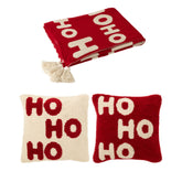 Bundel Kerstplaid & Kerstkussens HoHoHo Rood/Wit J-Line