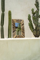 Deze prachtige spiegel is gemaakt door stukken drijfhout te verzamelen en ze rond het rechthoekige glas in het midden te plaatsen. Geen enkele spiegel is precies hetzelfde!