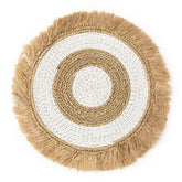 Voeg een tropisch tintje toe aan uw tafelschikking met deze raffia en zeegras placemats. De combinatie van wit en natuurlijke tinten brengt onmiddellijk gezelligheid op uw etentjes.