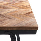 Deze hoogwaardige console is gemaakt van teakhout (in een zeer elegant visgraatpatroon) en zwart ijzer. De tafel is inklapbaar en heeft de ideale hoogte om te dienen als uw familie-eettafel, zowel binnen als overdekt buiten. Er zijn twee maten beschikbaar en deze tafel is ook verkrijgbaar in naturel. Combineer ze met onze visgraatbanken om de complete look te shoppen.