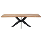 De eettafel heeft een stoere spinpoot van zwart metaal. Het ontwerp van de spiderpoot in deze collectie is extra bijzonder: hij loopt taps toe. Dit geeft de poot een slank effect. Omdat bij een spinpoot de poten in het midden zitten, heb je alle ruimte voor je benen. Het geeft van alle tafels de meeste ruimte om er stoelen omheen te zetten, waarbij iedereen comfortabel zit. Het is daardoor het meest gebruiksvriendelijke onderstel.