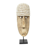 Deze unieke 'hoofd' display op standaard is een verbluffende etnische schoonheid. Het hoofd is versierd met mooi met de hand geplaatste schelpen. Dit stuk verdient absoluut een speciale plaats om uw interieur, overdekt terras of tuin te verfraaien.