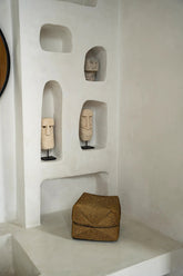 Deze eenvoudige stenen beelden zijn afkomstig van het Indonesische eiland Sumba en zijn met de hand uit zandsteen gehouwen door plaatselijke ambachtslieden. In de traditionele dorpen van Sumba worden beelden als deze geplaatst in en rond de ingang van de hut en bieden bescherming en genezing aan de bewoners binnen.
