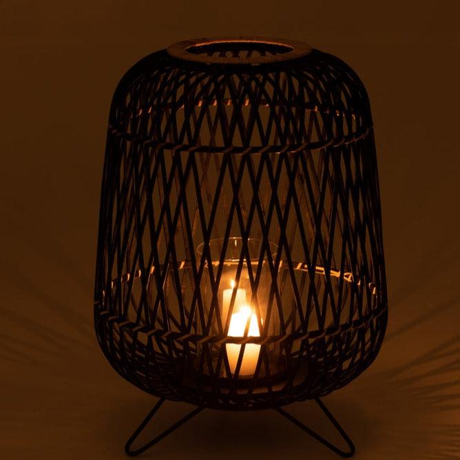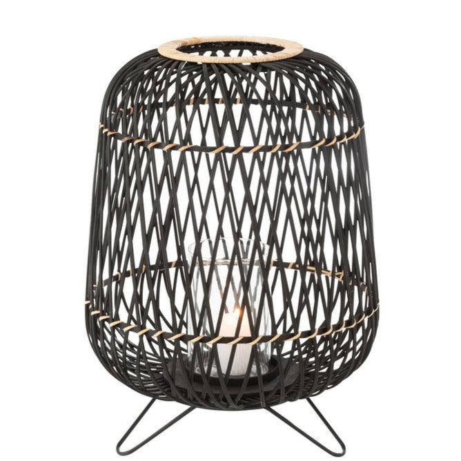 Lantaarn Op Voet Bamboe Zwart/Naturel Large