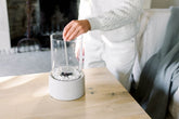 De Stonefire tafelhaard wit van Leeff brengt direct sfeer in elke ruimte, zowel binnen als buiten. Dankzij het compacte design en de natuurlijke uitstraling van steen en glas is dit een stijlvolle toevoeging aan je eettafel, salontafel of tuintafel. De haard werkt op bio-ethanol: een schone brandstof zonder geur of roet, waardoor je zonder zorgen geniet van een dansende vlam en warme ambiance.