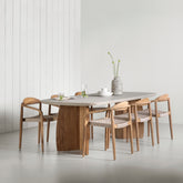 Combineer de Santiago met een teakhouten eettafel voor een natuurlijke, harmonieuze look. Of kies voor contrast met een stalen tafel voor een eigentijdse setting. Deze stoel voelt zich thuis in uiteenlopende stijlen – van Ibiza tot industrieel.