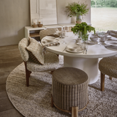 Als je een voorkeur hebt voor elegante, strakke lijnen, dan zou deze ronde eetkamertafel kalkpleister Piastro je wel eens kunnen aanspreken. Door het gebruik van duurzaam en natuurlijk kalkpleister krijgt deze eettafel een ingetogen en gestructureerd ontwerp. Het materiaal is niet alleen sterk en vlekkenresistent, het voegt ook een gevoel van rust en zachtheid toe aan hedendaagse interieurs.