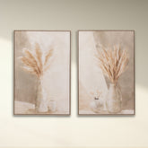Painting Vase Pampas Canvas/Wood Beige – Set van 2 (J-Line)