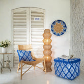 Poef Oosters Patroon Katoen Blauw/Wit J-Line