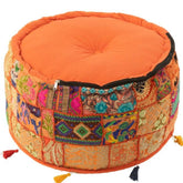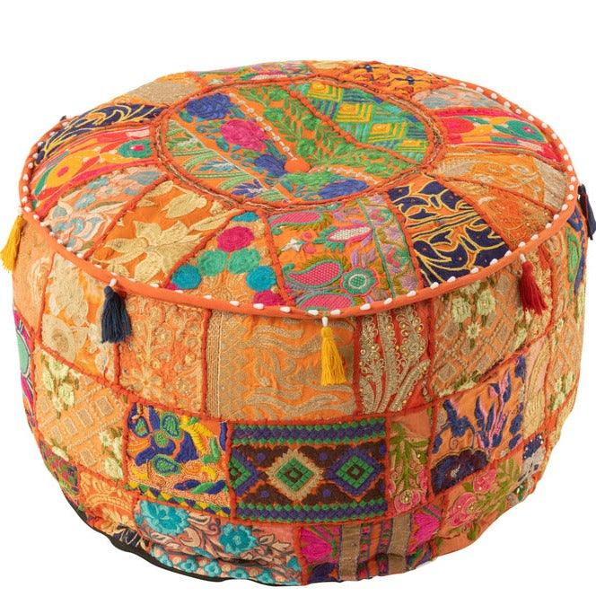 Poef Rond Patronen + Kwasten Katoen Oranje J-Line