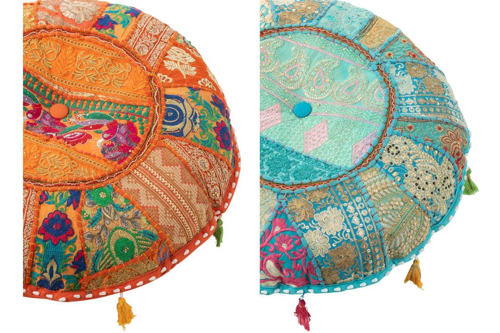 Poef Rond Plat Patronen + Kwasten Katoen Oranje/Blauw Set van 2 J-Line