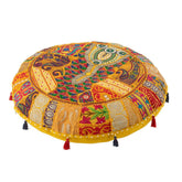 Pouf Round Plat Patterns+Tassels Cotton Yellow.