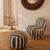 De Poef Gestreept Multiplex Zwart/Gebroken Wit is meer dan alleen een stijlvolle toevoeging aan je interieur. Dankzij de hoogwaardige materialen en stevige constructie kan deze poef een maximaal zitgewicht van 120 kg aan. De combinatie van zwart met gebroken wit strepen zorgt voor een moderne en frisse uitstraling die moeiteloos in elk interieur past. Bovendien biedt het zachte schuim een aangenaam zitcomfort, waardoor het ideaal is voor zowel dagelijks gebruik als speciale gelegenheden.