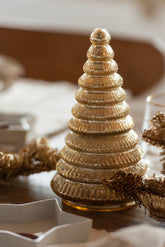 Geurkaars Kerstboom Geribbeld Glas Goudkleurig Small: Voeg Sfeer Toe aan Jouw Kerst Interieur