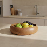 Teakhout staat bekend om zijn natuurlijke oliën, waardoor het een van de duurzaamste houtsoorten ter wereld is. Dit maakt het onderhoud eenvoudig: een licht vochtige doek is voldoende om de schaal schoon te houden. Wil je de warme kleur extra ophalen of het hout voeden? Behandel het dan met natuurlijke houtolie of bijenwas voor een langdurige, matte glans.