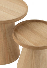 Bijzettafels Rond + Rand Hout Naturel Set van 2 J-Line