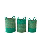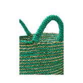 Set Van 3 Mand Gestreept Raffia Donkergroen/Naturel J-Line