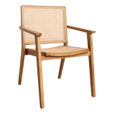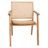 Geef je eetkamer een natuurlijke uitstraling met deze teakhouten eetkamerstoel met armleuning van Raw Materials. Het rotan in de zitting en rugleuning geeft de stoel een warme textuur die past in zowel landelijke als moderne interieurs.