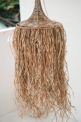 Wat een schoonheid! Deze lampenkap van raffia en rotan brengt je rechtstreeks naar je favoriete strandclub of tropische bestemming, zonder je huis te verlaten. Hang hem in je overdekte buitenruimte of gebruik hem binnen om een klein stukje paradijs te creëren.